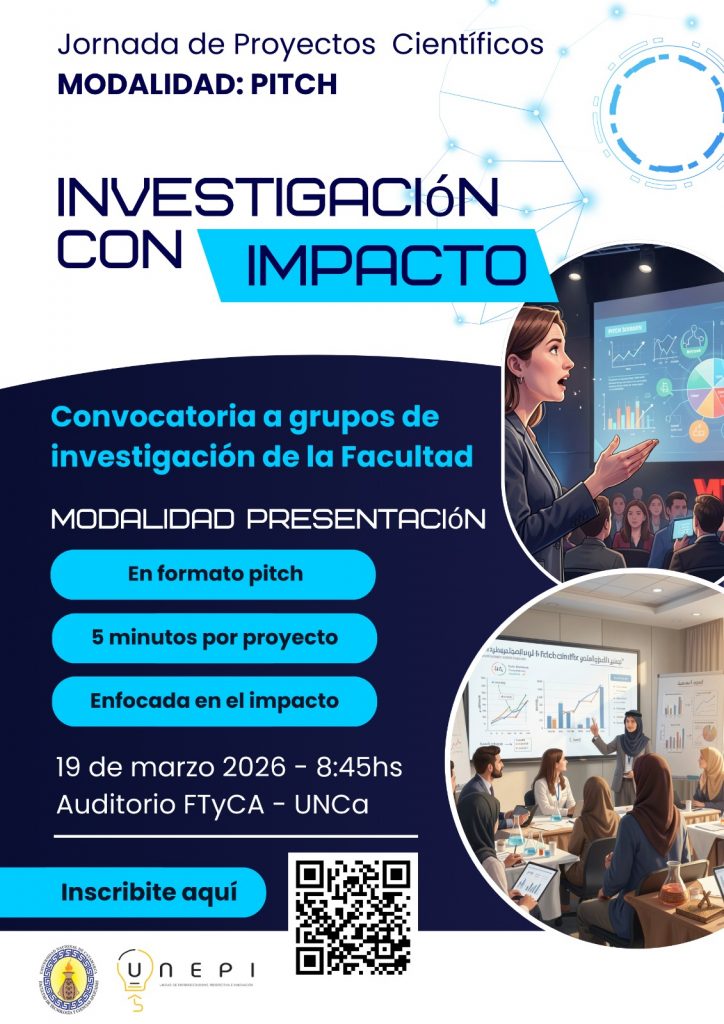 La Facultad de Tecnología y Ciencias Aplicadas de la Universidad Nacional de Catamarca (UNCA) realizará el próximo jueves 19 de marzo, a partir de las 9, las Jornadas de Proyectos Científicos “Investigación con Impacto”, propuesta destinada a visibilizar iniciativas de investigación con potencial de transferencia y desarrollo tecnológico.